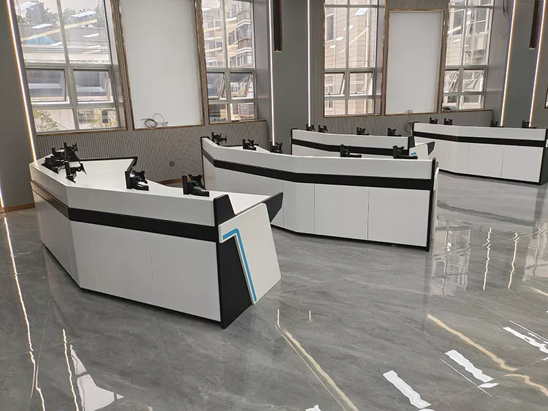हे नियंत्रण पॅनेल केवळ पारंपारिक रेखीय नियंत्रण पॅनेलशी संबंधित मर्यादित ऑपरेशनची समस्या सोडवत नाही तर सुव्यवस्थित केबल व्यवस्थापन चॅनेल आणि वेंटिलेशन स्पेस, गोंधळलेल्या केबल्स सहजपणे व्यवस्थित करणे, कार्यक्षम उष्णता नष्ट करणे सुलभ करणे आणि स्वच्छ आणि अधिक व्यवस्थित मॉनिटरिंग रूम लेआउट तयार करणे देखील वैशिष्ट्यीकृत करते. त्याची मजबूत रचना उपकरणे हलवण्याची किंवा विकृत होण्याची चिंता न करता अनेक मॉनिटर्स आणि पेरिफेरलला स्थिरपणे समर्थन देऊ शकते, दीर्घकालीन स्थिर ऑपरेशन सुनिश्चित करते आणि भविष्यातील देखभाल त्रास कमी करते.