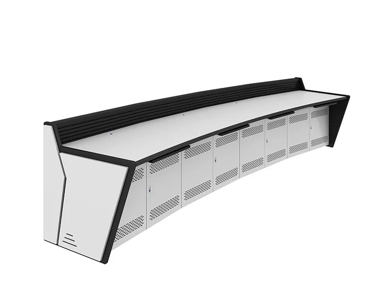 1. सुलभ ऑपरेशनसाठी एर्गोनॉमिक वक्र डिझाइन: वक्र टेबलटॉप व्हिज्युअल आणि ऑपरेशनल फ्लोशी सुसंगत आहे, ज्यामुळे ऑपरेटर्सना वारंवार न फिरवता एकाधिक स्क्रीनवर सहज नजर ठेवता येते, लांब शिफ्टमधून मान, खांदे आणि पाठीचा थकवा लक्षणीयरीत्या कमी होतो आणि मॉनिटरिंग कार्यक्षमता सुधारते.