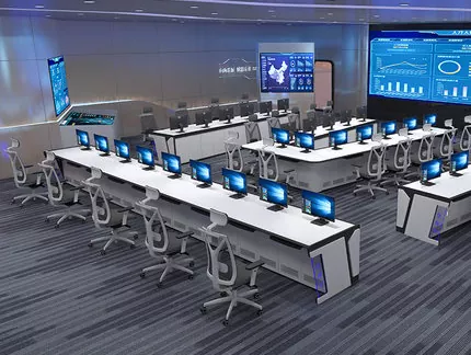 2. संरचना आणि आकार: उपकरणे आणि कर्मचाऱ्यांसाठी पुरेशी जागा सोडून, कमांड सेंटर स्पेस आणि ऑपरेशनल गरजांवर आधारित सरळ, L-आकाराचे, U-आकाराचे किंवा सानुकूल डिझाइन निवडा.