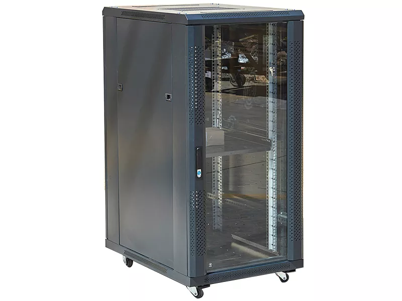 टेमी रुई फ्लोअर-माउंटेड नेटवर्क कॅबिनेट 1.2-2.0 मिमी जाडीच्या कोल्ड-रोल्ड स्टीलपासून तयार केले जाते, जे उत्कृष्ट संरचनात्मक सामर्थ्य आणि भार सहन करण्याची क्षमता सुनिश्चित करते. कॅबिनेट कार्यक्षम वायुवीजन प्रणाली, IP20 संरक्षण आणि चोरीविरोधी लॉकिंग यंत्रणा एकत्रित करते, ज्यामुळे गंभीर IT उपकरणांसाठी सुरक्षित आणि संघटित वातावरण मिळते.