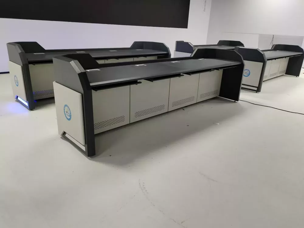 मर्यादित जागेत कन्सोलचा जास्तीत जास्त वापर करण्यासाठी निरर्थक संरचना काढून टाकणारी उत्पादने अत्यंत साधी, संक्षिप्त रचना आहे. ते भिंतीच्या विरुद्ध, मध्यभागी किंवा इतर ठिकाणी, अतिरिक्त क्रियाकलाप जागा व्यापल्याशिवाय, लवचिक हालचाल आणि ऑपरेटरसाठी मल्टी-स्टेशन सहकार्याची सोय न करता ठेवता येतात. शरीर उच्च-विशिष्टीकरण कोल्ड-रोल्ड स्टील प्लेटपासून तयार केले गेले आहे, ज्यामध्ये अनेक प्रक्रिया आणि पृष्ठभाग उपचार केले जातात, परिणामी एक मजबूत आणि विकृती-प्रतिरोधक रचना असते जी मॉनिटरिंग रूममध्ये उच्च-फ्रिक्वेंसी दैनंदिन वापरामुळे विविध प्रकारच्या झीज आणि अश्रूंना तोंड देऊ शकते.