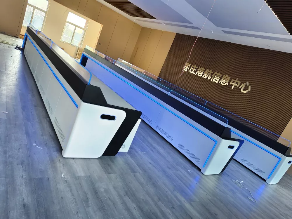 A: रेखीय रचना सतत कार्यरत पृष्ठभाग तयार करते, दृष्टी आणि ऑपरेशनमध्ये अंध स्पॉट्स टाळते आणि भिंतीवरील जागेचा जास्तीत जास्त वापर करते. स्प्लिसिंग डिझाईन सहयोगी ऑपरेशनला प्रभावित न करता एकाधिक वर्कस्टेशन्स दरम्यान सिग्नल इंटरऑपरेबिलिटी सुनिश्चित करण्यासाठी प्रमाणित इंटरफेस वापरते.